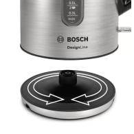 Reposer la bouilloire sur le socle n'a jamais été aussi facile. La bouilloire chauffe peu importe où vous la placez sur la base. Le socle à 360 degrés signifie plus de flexibilité et une position de poignée confortable. Puisque le cordon est connecté à la base, la bouilloire peut être transportée partout où vous en avez besoin.
