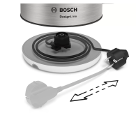Les câbles qui traînent prennent de la place. Avec le rangement du cordon sous la base de la bouilloire, le câble peut être ajusté à la longueur souhaitée entre le produit et la fiche - sans encombrement de câble. De plus, le câble peut être rangé complètement dans la base, ce qui permet de ranger la bouilloire dans l'armoire.