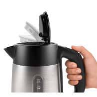 Remplir la bouilloire d'eau doit être aussi pratique que possible. Le couvercle de cette bouilloire pratique peut être ouvert sur simple pression d'un bouton.