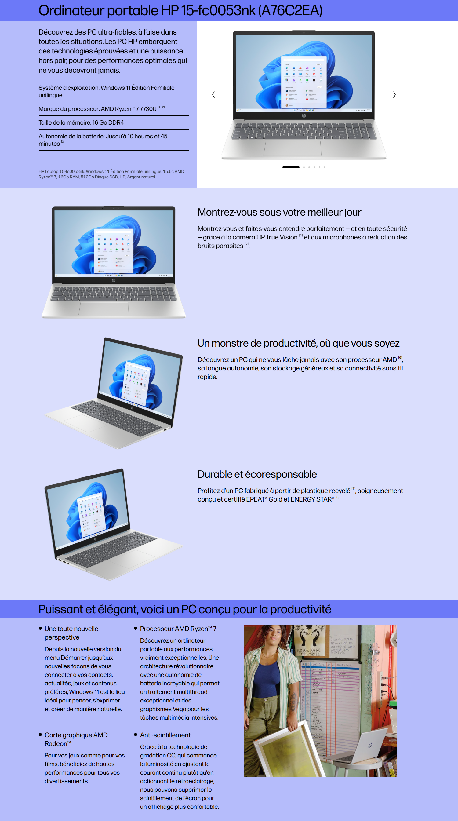 PC PORTABLE HP 15 AMD R7-7730U 16G 512G SSD WIN11H SILVER