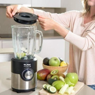 Sécurité&Pratique: Récipient avec goulot de remplissage, verre verrouillable. Mixeur avec pieds antidérapants et système de sécurité, ne fonctionne que lorsque le Bol est correctement placé.