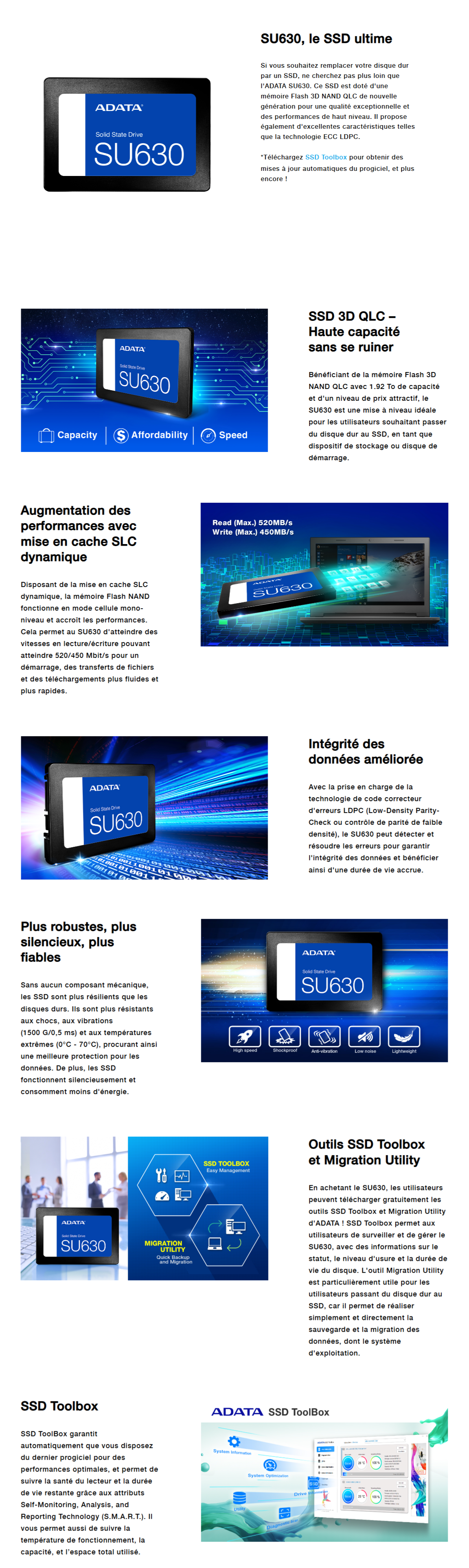 DISQUE SSD INTERNE ADATA SU630 2.5" 480 GO SATA QLC 3D 12M