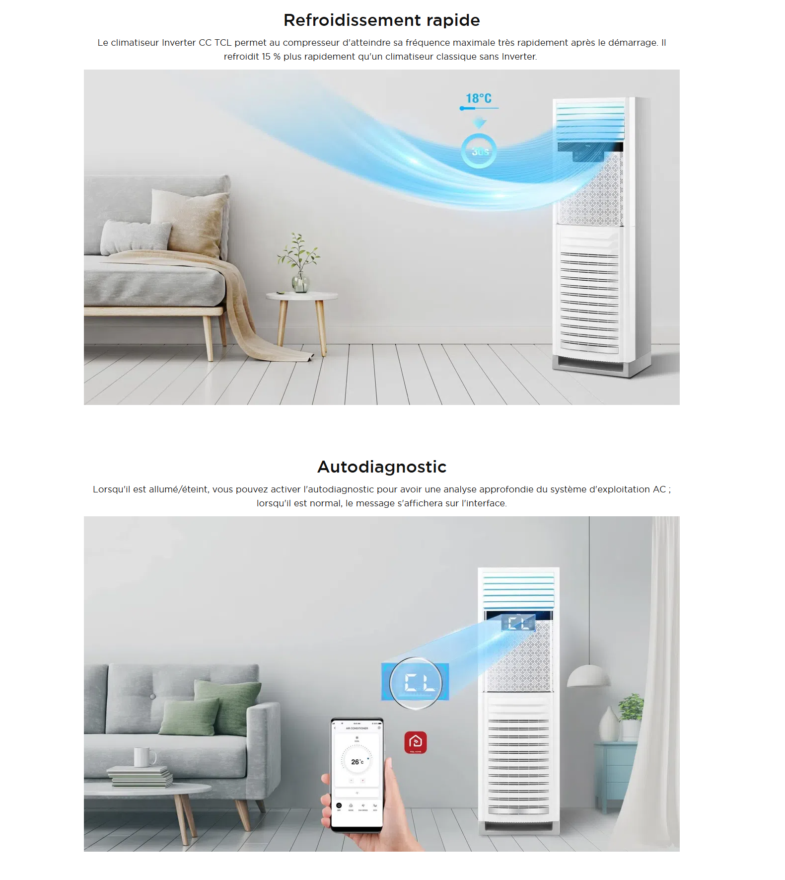 CLIMATISEUR TCL 36000 ARMOIRE INVERTER "Sans Installation"