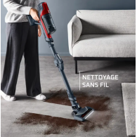 Cet aspirateur balai garantit une performance de nettoyage au quotidien sans effort : technologie cyclonique, moteur de 100 W associé à une tête d'aspiration motorisée avec éclairage Leds, Tube Flex pour aspirer sous les meubles bas, réglages automatiques ECO et SURFACE et gâchette « BOOST offrant une pleine puissance d'aspiration pour les accidents du quotidien.