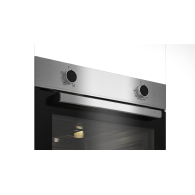 Ce four encastrable en finition inox allie performance et praticité. Avec un volume généreux de 74 litres et 5 niveaux de cuisson, il vous offre une grande flexibilité pour préparer plusieurs plats en même temps. Il dispose de 4 fonctions de cuisson, d’un éclairage halogène pour une meilleure visibilité, et d’un nettoyage vapeur SteamShine pour un entretien facile. Sa puissance de 2400 W et son ventilateur de refroidissement assurent une cuisson efficace et sécurisée. Compact et robuste (59,5 x 59,4 x 56,7 cm, 25,1 kg), il fonctionne sous 220-240 V / 50 Hz et est couvert par une garantie de 2 ans.