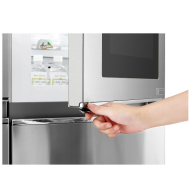 Toquez deux fois et visualisez l'intérieur LG Instaview Door-In-Door a un élégant panneau en verre miroir qui s'illumine avec deux coups rapides, vous permettant de voir à l'intérieur du compartiment sans avoir à ouvrir la porte , tout en réduisant la perte d'air froid ce qui aide à maintenir la nourriture fraîche plus longtemps