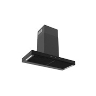Hotte décorative en forme de T, largeur 590 cm, avec une finition noire mate et un panneau en verre. Elle est équipée d’un moteur puissant de 230W offrant une capacité d’aspiration de 750 m³/h. Fonctionne sur une alimentation 220-240V, 50/60Hz.