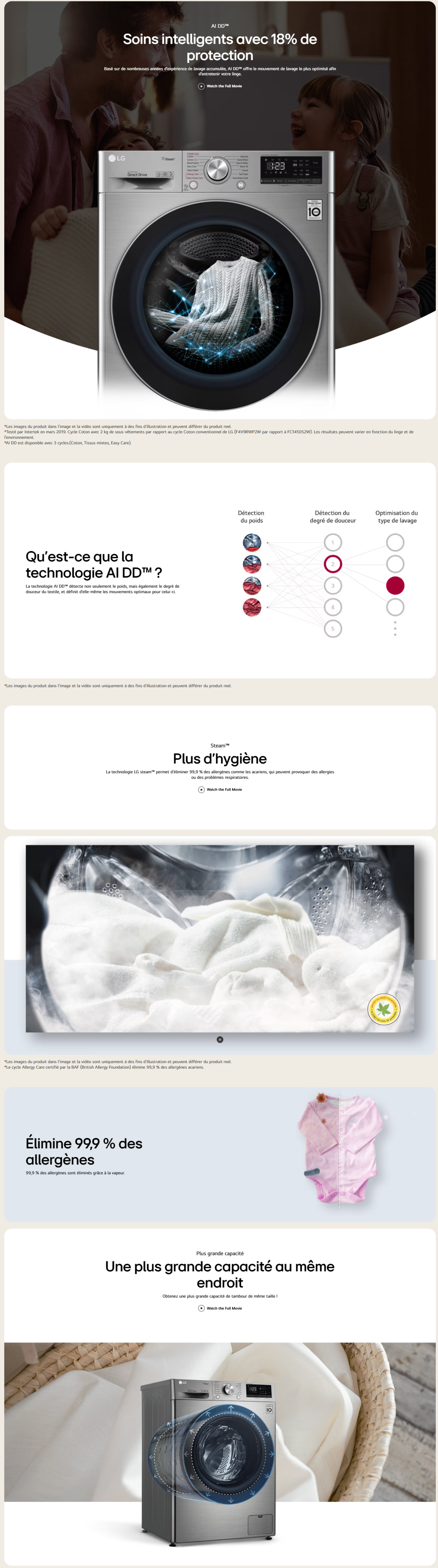 LG Lave-linge Vivace | 10.5 Kg | Capacité plus grande | AI DD | ThinQ