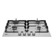La table de cuisson Gas on Metal Série 2 allie parfaitement design et fonctionnalité.Tous les composants de la table de cuisson sont en harmonie les uns avec les autres : les nouveaux boutons, réalisés en deux finitions différentes - mat et brillant - sont assortis à l'insert en verre noir et aux brûleurs noirs. Les grilles en fonte surélevées offrent un support stable pour les casseroles et donnent une perception plus légère de la table de cuisson.