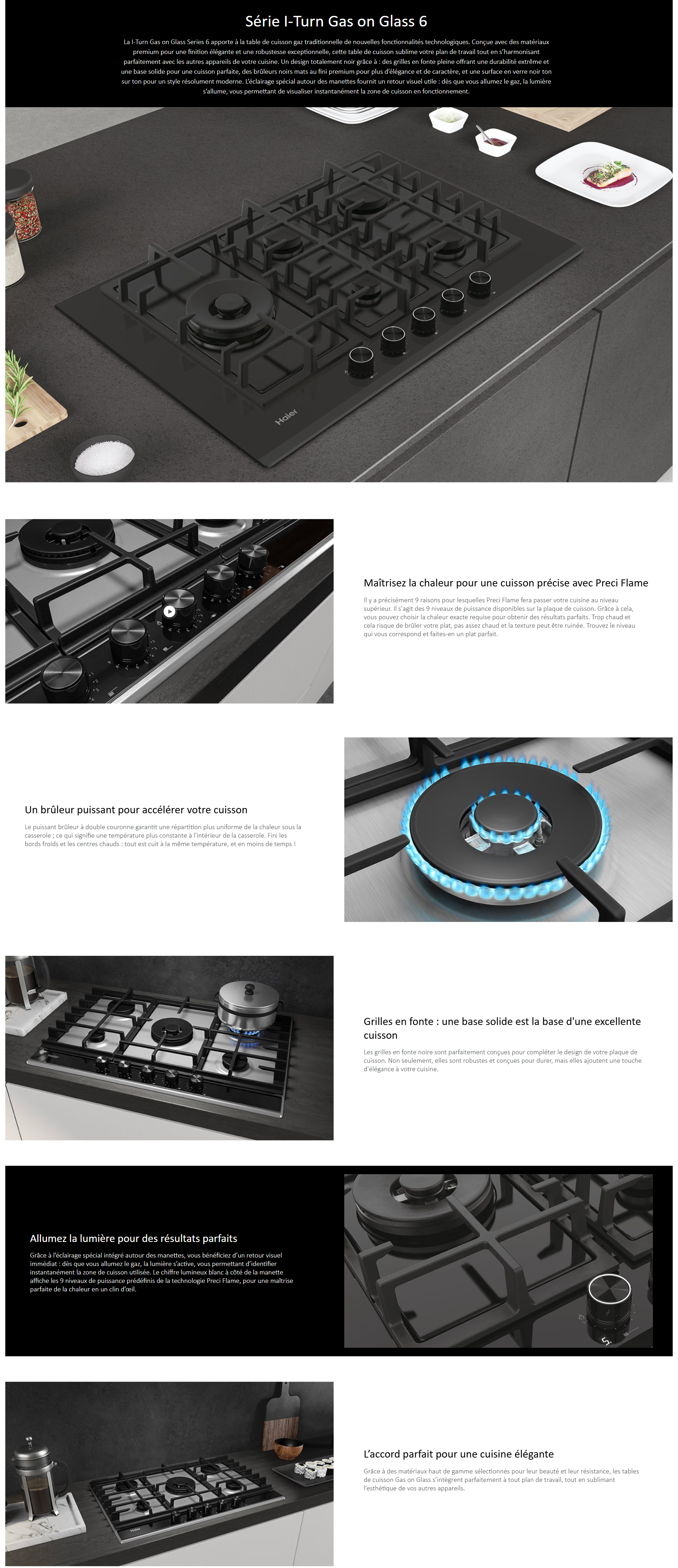 PLAQUE HAIER 5F 75CM EN VERRE NOIR