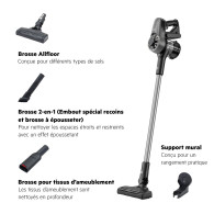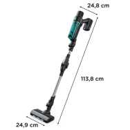 Un aspirateur-balai sans fil avec jusqu’à 50 minutes d’autonomie en mode mini, grâce à une batterie 6 cellules de 21,6 V.