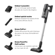 Optimisé pour toutes les surfaces (sols durs, tapis, meubles).