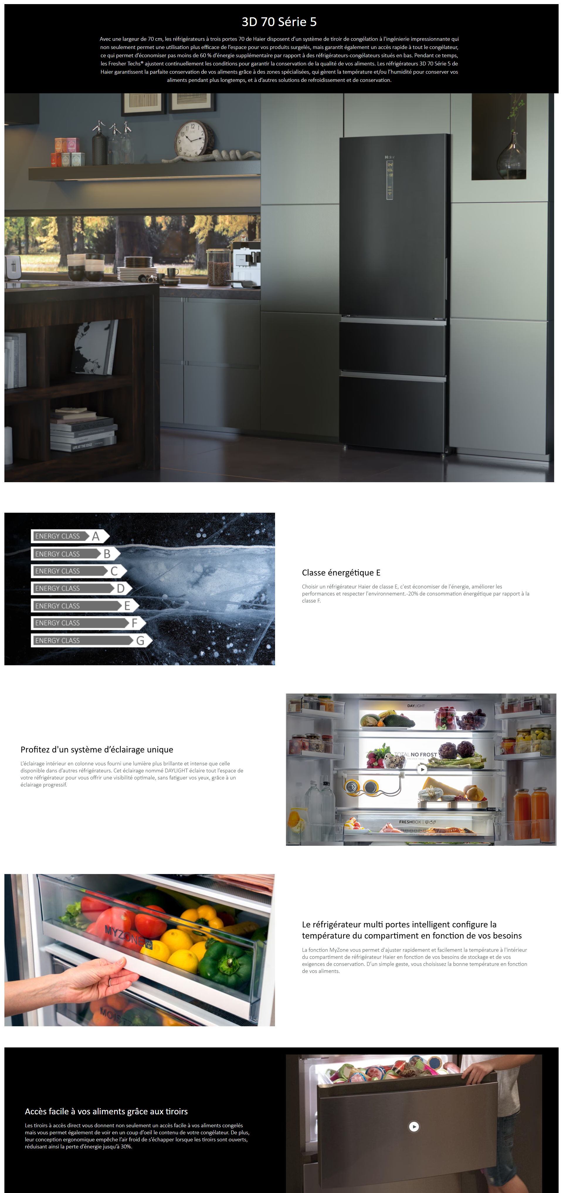RÉFRIGÉRATEUR HAIER COMBINÉ 528L 3D 70 SÉRIE 5 NOIR ARDOISE