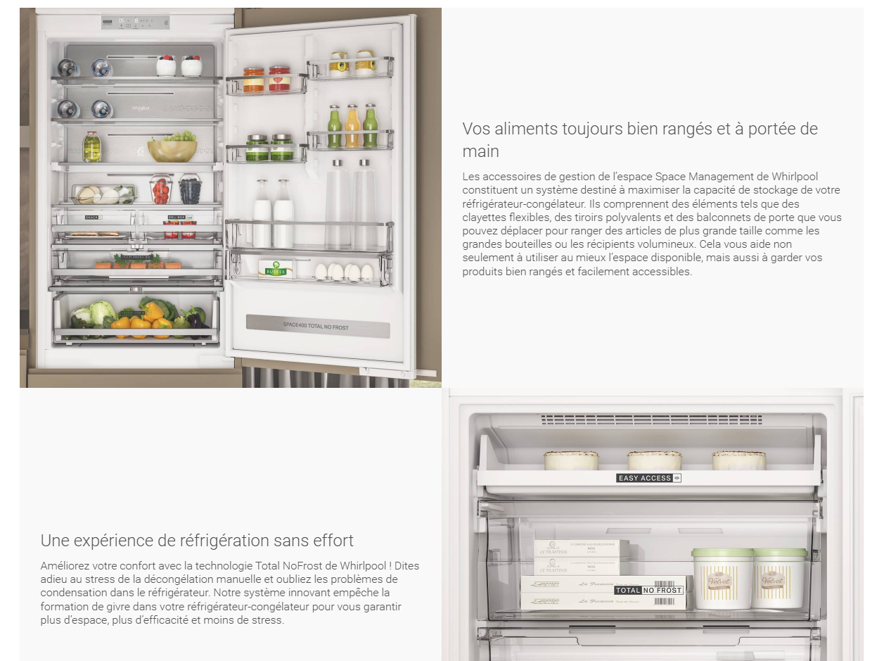 RÉFRIGÉRATEUR WHIRLPOOL 2 PORTES 314L POSABLE A+ NOIR