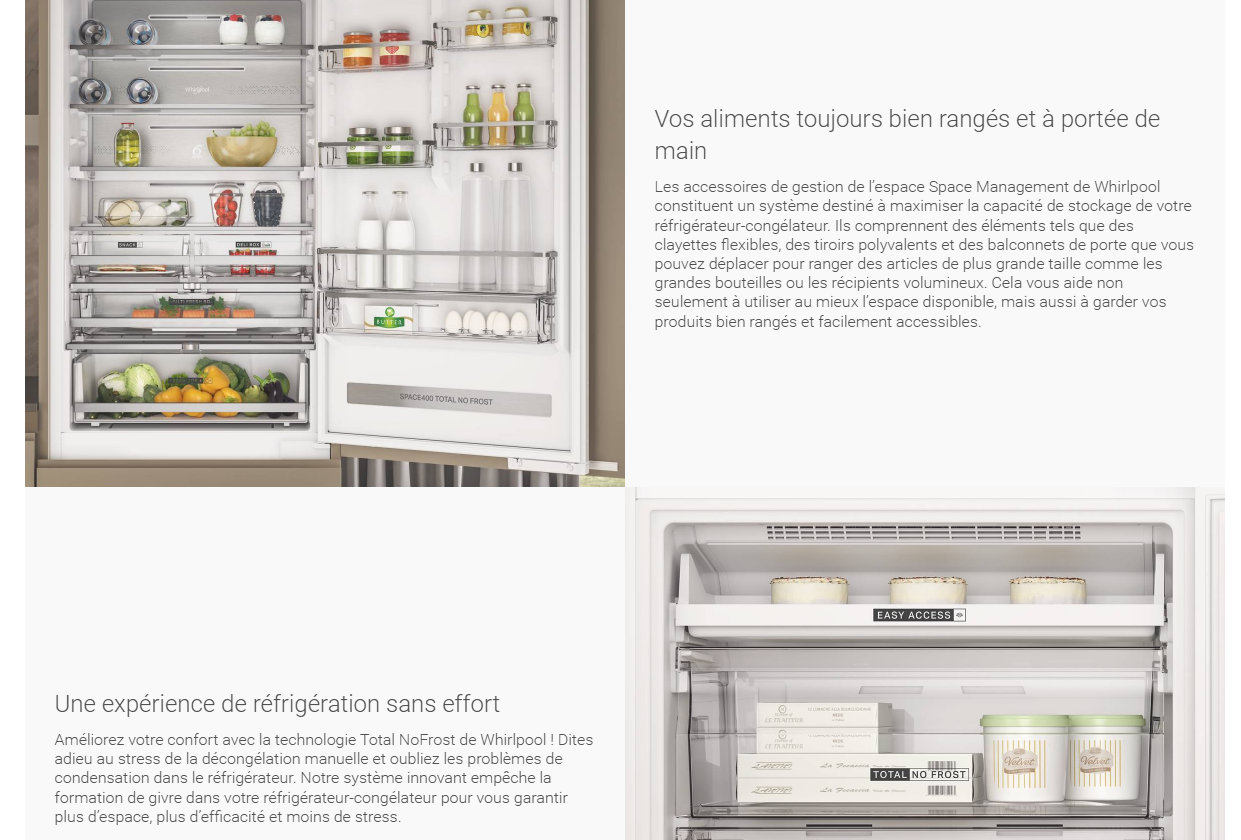 RÉFRIGÉRATEUR WHIRLPOOL COMBINE NO FROST 301L INOX